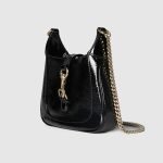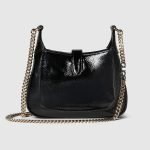 Inspired by the self-confidence of the Jackie line, the Jackie Notte is an evening handbag with subtle details that make it perfect for nighttime wear. Black patent leather, a hook closure, and light gold-toned Gucci lettering chain strap give this mini shoulder bag a unique touch.
