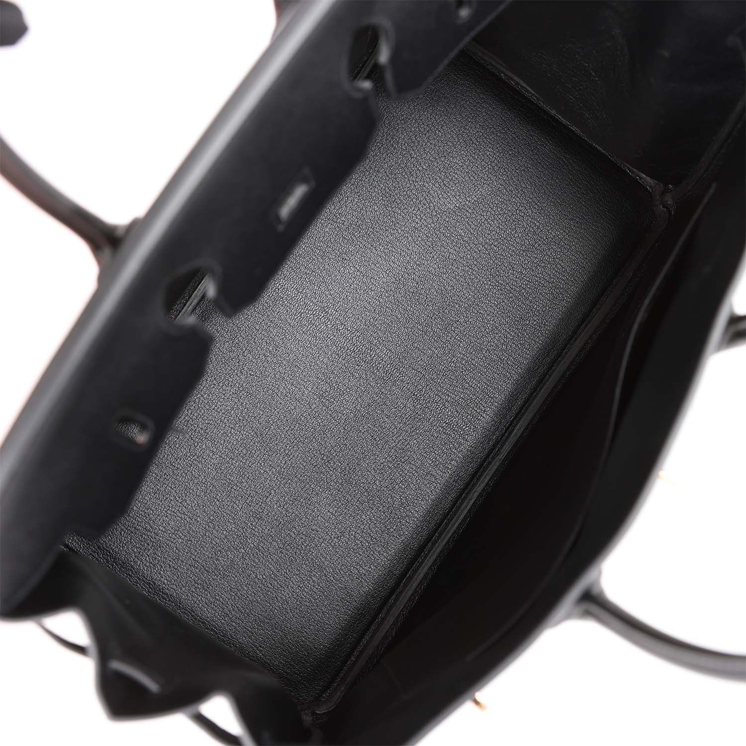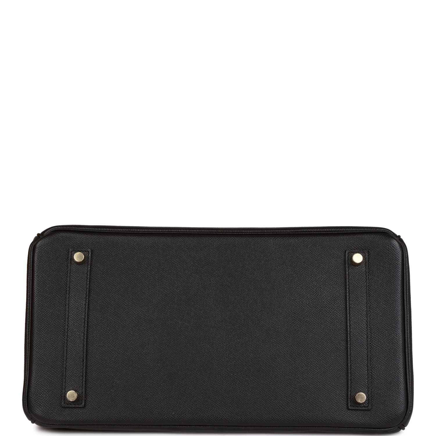 This Birkin is of black epsom leather with gold hardware and features tonal stitching.front flap. two straps with center toggle closure. clochette with lock and two keys. and double rolled handles.