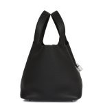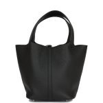 This Picotin is in black clemence leather with palladium hardware and has tonal stitching with two top handles.