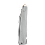 This Evelyne is in Bleu Pale clemence leather with gold hardware and has tonal stitching. pull tab top closure and Bleu Pale removable canvas and leather shoulder/crossbody strap.