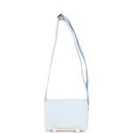 This Geta is in Bleu Brume chevre leather with gold hardware and has tonal stitching. magnetic flap closure and adjustable shoulder strap.