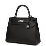 Hermès Kelly Sellier 25 Black Epsom Palladium Hardware