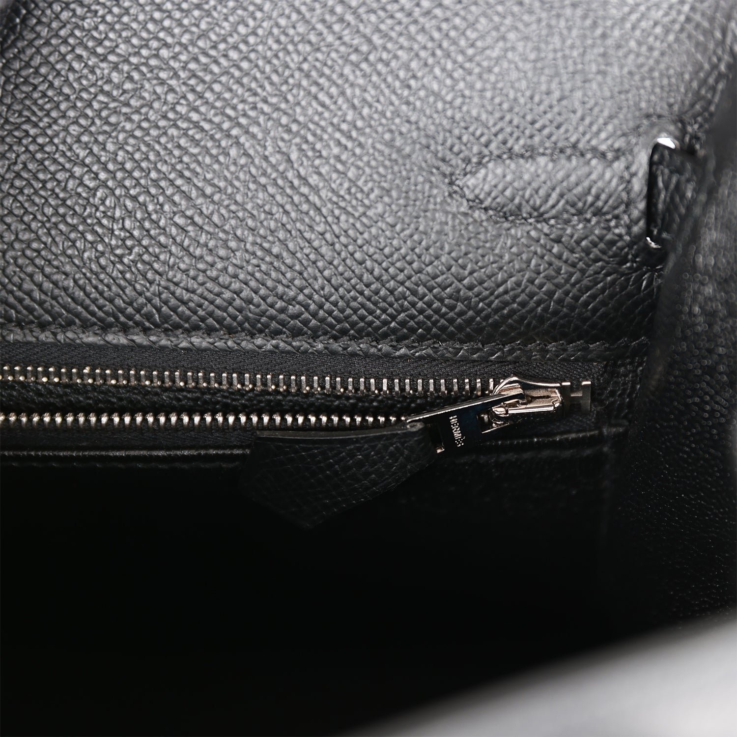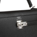 This Kelly. in the Sellier style. is in Black epsom leather with palladium hardware and has tonal stitching two straps with front toggle closure. clochette with lock and two keys. a single rolled handle and removable shoulder strap.