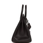 This Limited Edition Birkin is in black evercolor leather with palladium hardware and has tonal stitching. various exterior pockets. front flap. two straps with center toggle closure. clochette with lock and two keys. and double rolled handles.