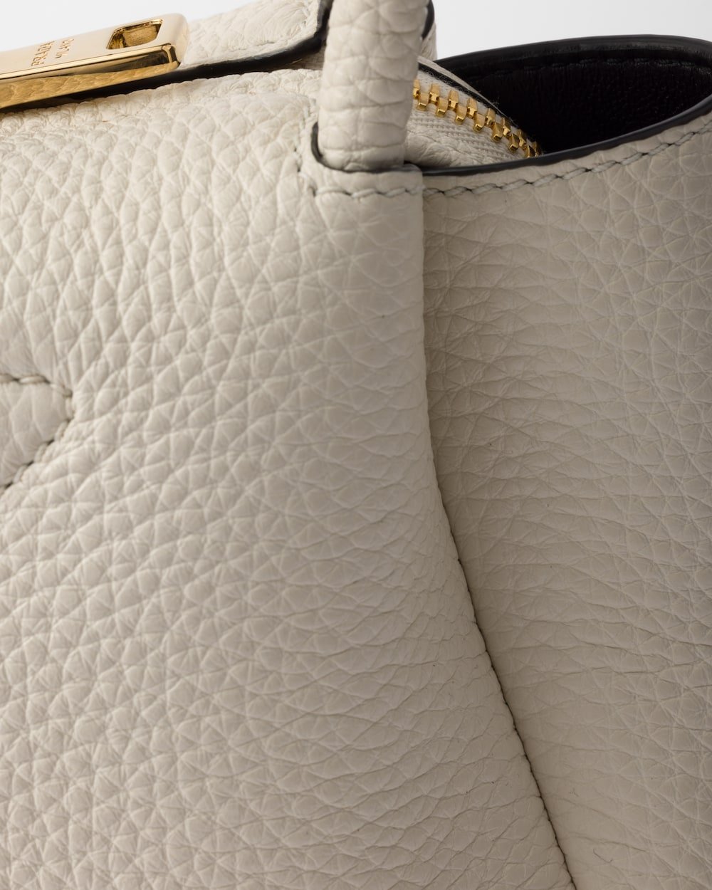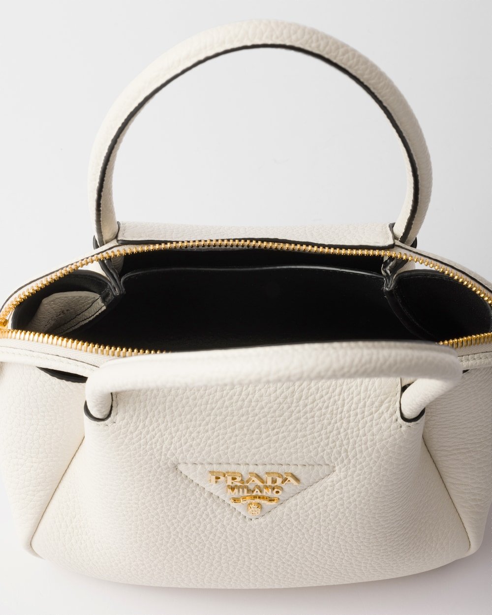 This refined and contemporary leather bag with a natural finish and inverted construction gives the design a soft, rounded shape. The compact accessory, worn as a handbag or with a detachable shoulder strap, reveals a versatile, sophisticated soul.
