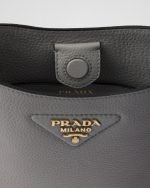This versatile leather bag boasts a sleek and functional design. The shoulder strap adds a sporty element to the accessory, elevated by the metal logo lettering that stands out on the simple yet distinctive geometry of the iconic triangle.