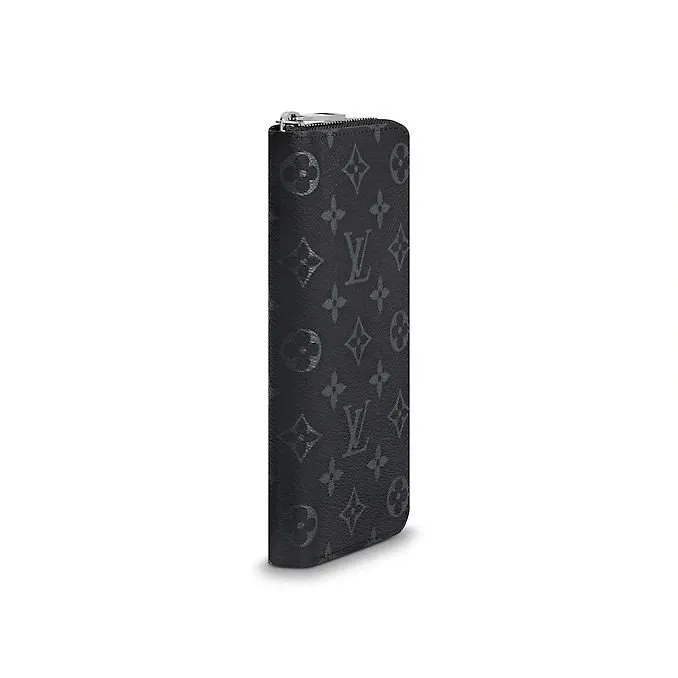 In contemporary Monogram Eclipse canvas Louis Vuitton’s Zippy Vertical wallet is a stylish and practical way to carry essential cards and cash. It has a secure zip-around design which features multiple credit card slots a zipped pocket for coins and compartments for papers and banknotes.