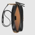 The small GG Marmont chain shoulder bag has a softly structured shape and a zip top closure with the Double G hardware. The chain shoulder strap has a leather shoulder detail. Made in matelassé leather with a chevron design and GG on the back.