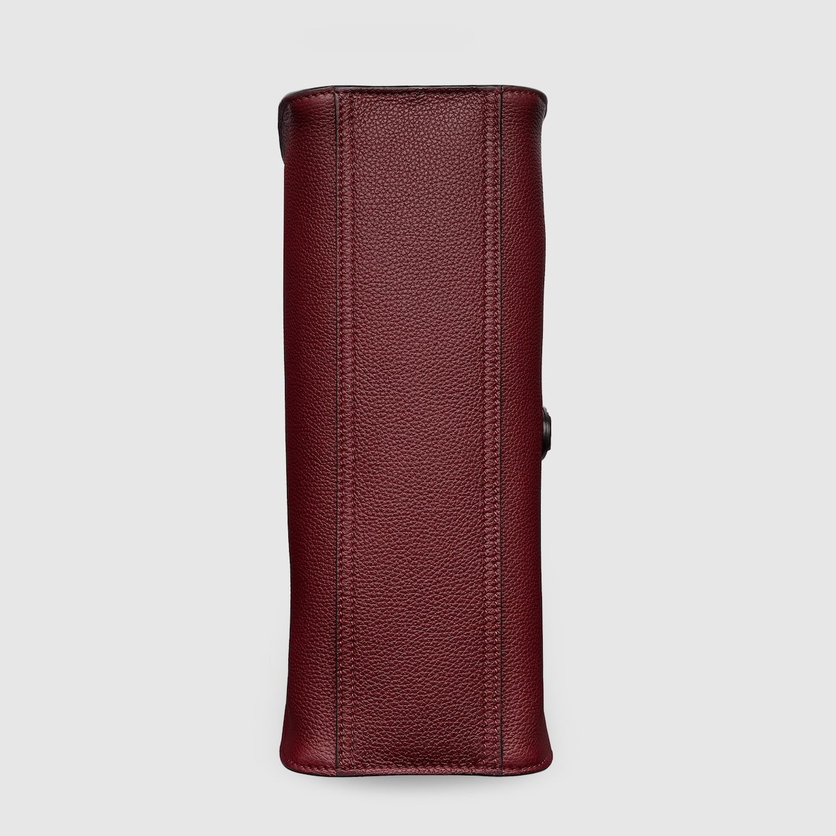 This medium tote design continues to feature the snap hook closure, first introduced in the Spring Summer 2024. The sophisticated leather in Gucci Rosso Ancora red has a distinctive natural grain. The top handle bag’s open compartment has a hook closure strap, and comes with a detachable and adjustable shoulder strap.