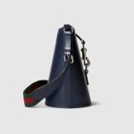 This mini bucket shoulder bag is crafted in blue leather. This accessory is a perfect blend of functionality and modernity thanks to the design with hook closure and a Web shoulder strap.