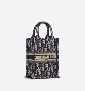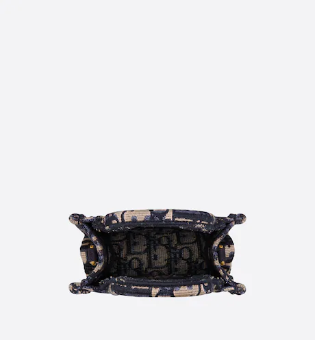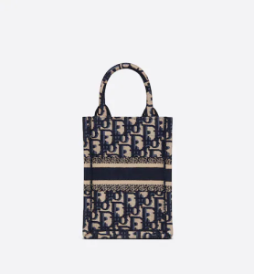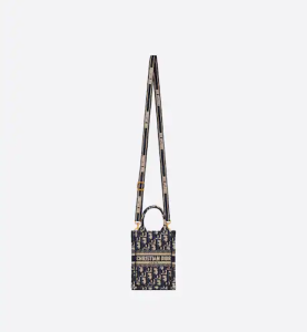 MINI DIOR BOOK TOTE PHONE BAG Blue Dior Oblique Embroidery (13 x 18 x 5 cm)