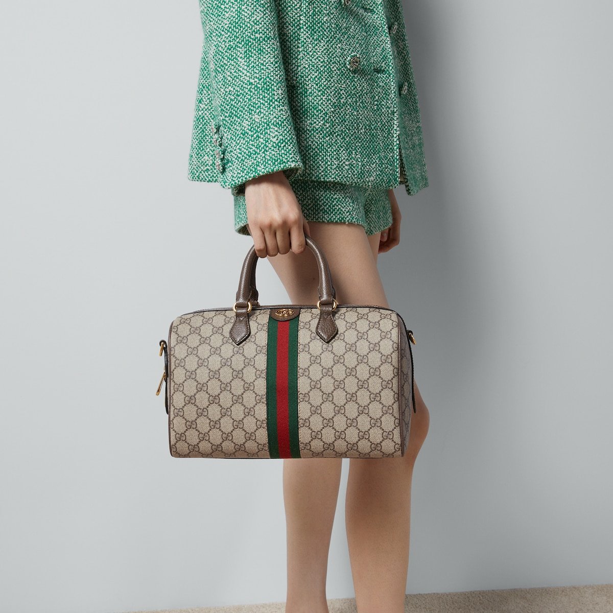 A signature fabric, GG Supreme canvas has become a staple throughout the Gucci universe. Reinterpreted through the Gucci lens, the material appears throughout the latest collections. Here, this medium top handle bag is crafted with the all-over monogram motif. Completing the logo feel, the signature Double G hardware completes the style.
