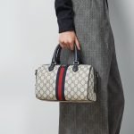 A signature fabric, GG Supreme canvas has become a staple throughout the Gucci universe. Reinterpreted through the Gucci lens, the material appears throughout the latest collections. Here, this small top handle bag is crafted with the all-over monogram motif. Completing the logo feel, the signature Double G hardware completes the style.