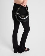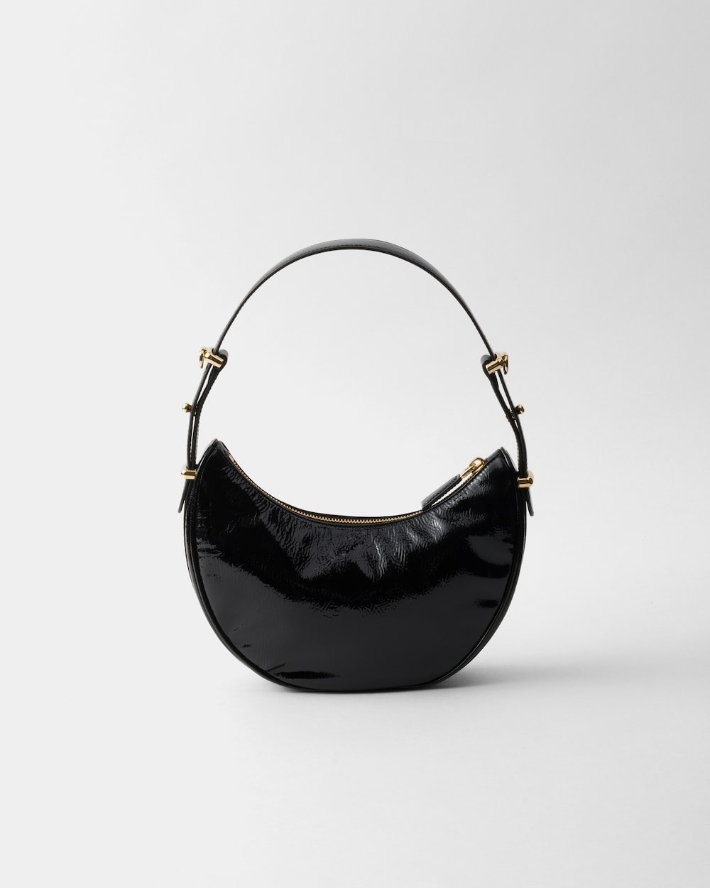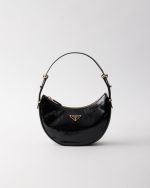 The soft, sinuous lines of the Prada Arqué bag are emphasized by the naplak patent leather that gives the accessory a distinctive shiny effect and texture with vintage allure. Elegant gold-tone hardware embellishes the silhouette.