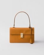 Inspired by rigid, formal work bags, this leather bag is a reinterpretation of the classic office silhouette with a new attitude. The archetypal shape is softened and enriched with sophisticated, feminine details. The vertical clasp, taken from the archives, embellishes the accessory characterized by a long handle that can be worn over the shoulder.