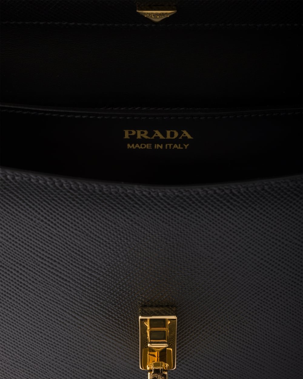 • Flap closure with logoed push-lock clasp